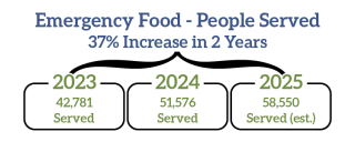 This year also brought about a significant increase in our operational capacity with the opening of the LCS Food Hub in March. The year was not without its challenges. We are experiencing uncertainty around funding for nonprofits, a government shutdown, economic disruptions, and are also discomforted by the worsening conditions that impact the well being of our clients. This has resulted in a significant increase in need and service levels in the face of less dependable resources to operate programs.